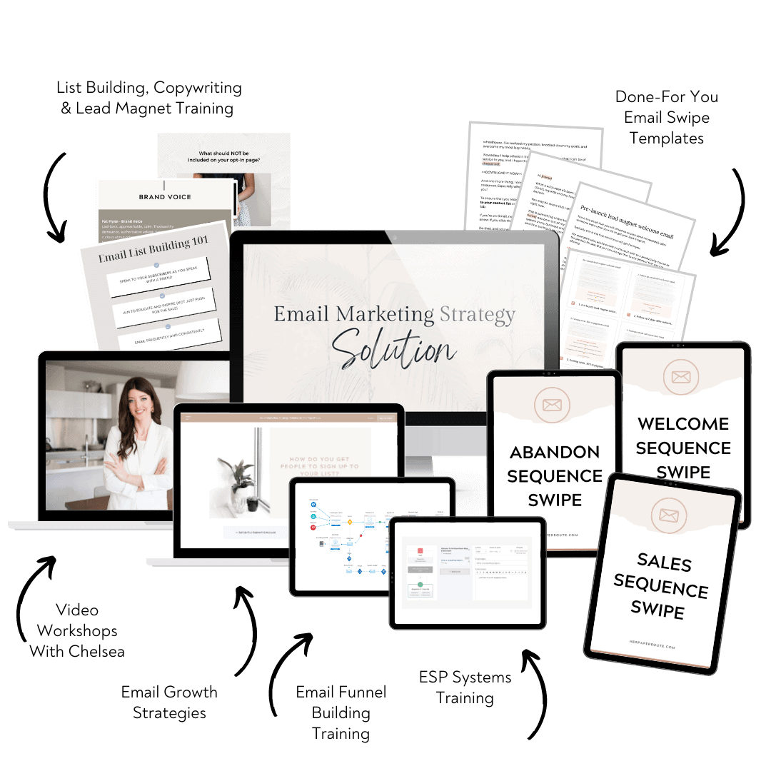 Chelsea teaches the strategies she has used to grow multiple email lists to more than 300,000 engaged subscribers, plus the core skills that move the needle, like attracting the right people, keeping them engaged, and sending sales emails with confidence because you know your list is warmed up and ready.